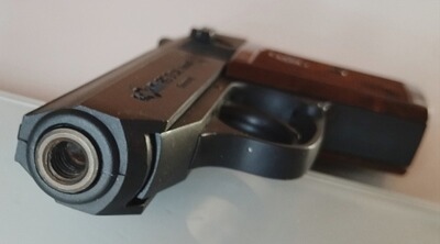 Diese Röhm RG9 wird als Schreckschusswaffe mit dem Kaliber 8 mm angeboten. Die PTB-Nummer ist 413. Diese Waffe kommt mit den originalen Griffschalen und wird im Originalkarton geliefert. Zum Lieferumfang gehören ein Abschussbecher, eine Bürste, ein rotes Filztuch sowie eine Bedienungsanleitung.