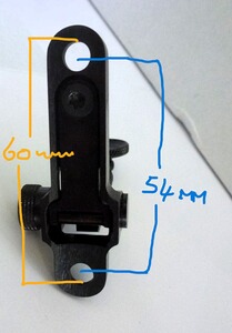 Der Lochabstand der beiden Befestigungsbohrungen liegt bei 54mm Mitte Mitte! Bzw. 60 mm Lochkante links/rechts.