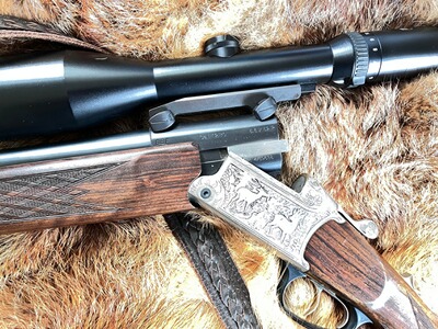 Neuwertige, wenig gebrauchte Blaser Bockbüchsflinte, mit Gravur "rehbock "