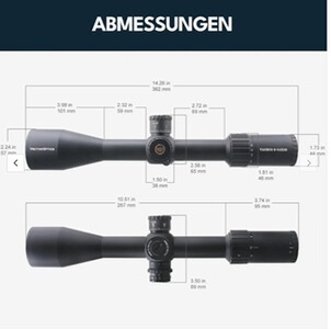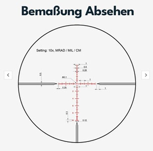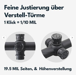 - Verstellung: 1/10 MIL (1cm, 0.1 MRAD)