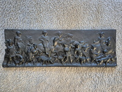 Kaminplatte, Jagdszene, aus Gusseisen, 61 x 20,5 cm, sehr guter Zustand
