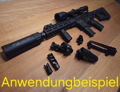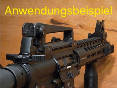 Die Fotos mit der Kennzeichnung: "Anwendungsbeispiel" zeigen Zubehörteile meiner anderen AR-Gewehre und dienen Ihnen zur Inspiration.