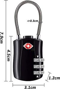 TSA Kofferschloss mit Stahlseil + Code - Schwarz f. Rucksack Reisetasche Waffentasche Pistolentasche