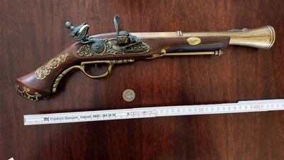 DeReplica Steinschlosspistole Blunderbluss Tromblon Piraten Deko defekt ca 44cm