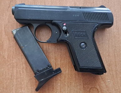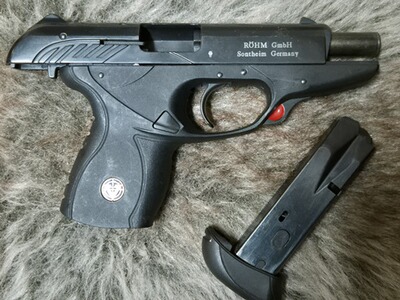 Vektor CP1 Schreckschusspistole (Röhmfertigung) ### Stahllauf ### PTB 749PrivatanbieterAb 18GebrauchtEUR 128,950 GeboteSofortkauf:EUR 129,002 Tage 23 Std. - Gaspistole / SRS-Waffe Röhm Mod. RG 9 im Kaliber 8mmK (PTB: 413)
