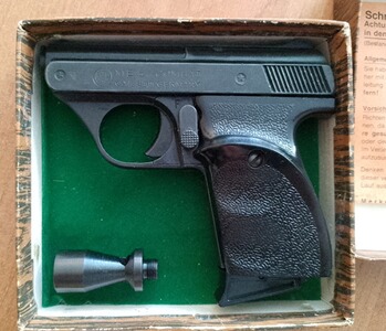 Walther P99 | Signalpistole | Schreckschusspistole | Gaspistole | Cal. 9 mm P.A.KPrivatanbieterAb 18ExzellentEUR 81,003 Gebote6 Tage 0 Std. - Berloque Pistole 2 mm in Holzbox und 2x 25 Patronen 2 mm