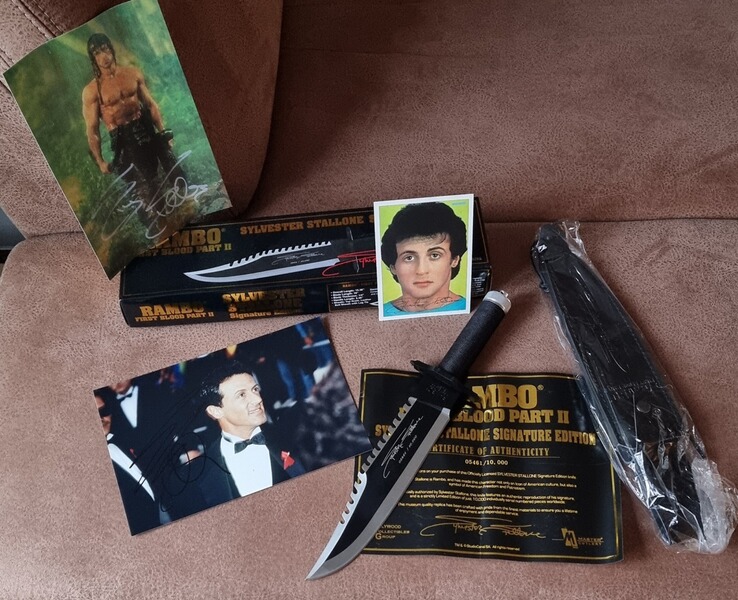 - Original Signatur von Silvester Stallone auf Foto+RAMBO Messer First Blood Part II Signature Edition